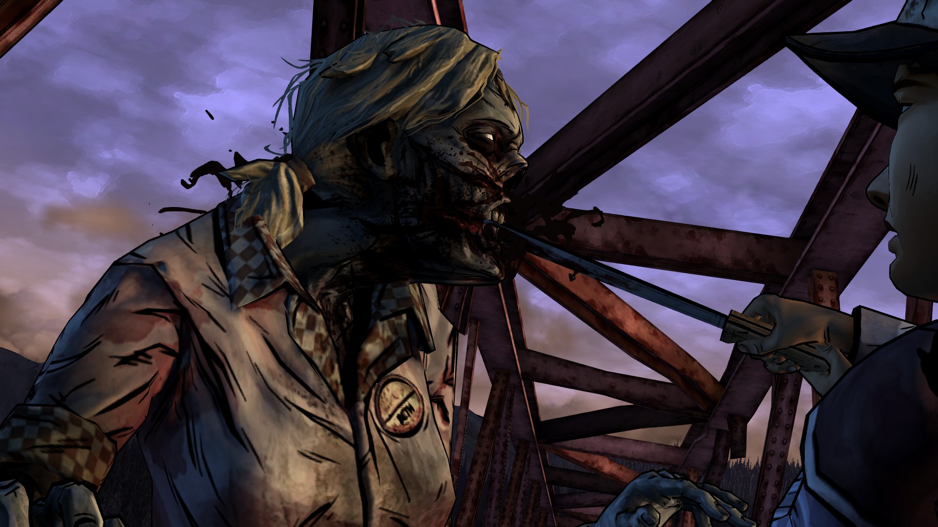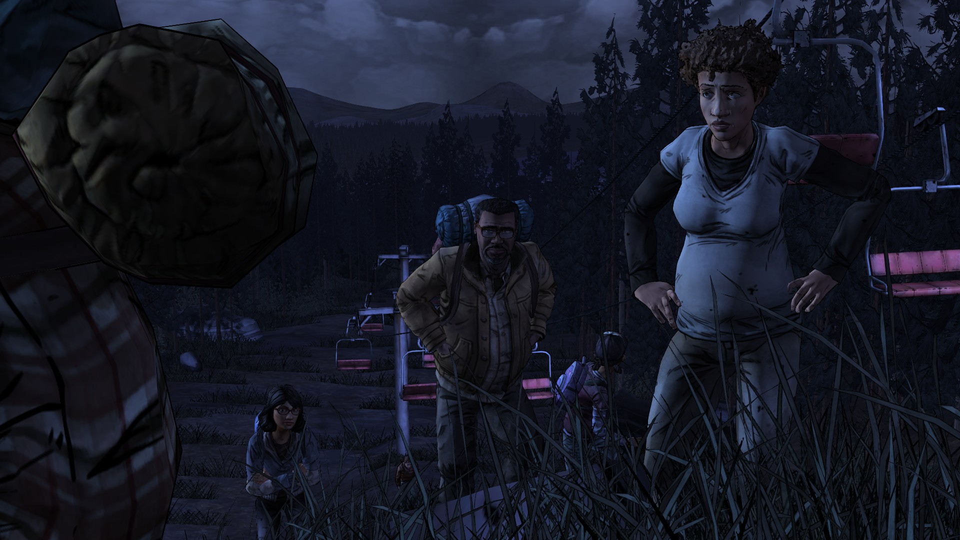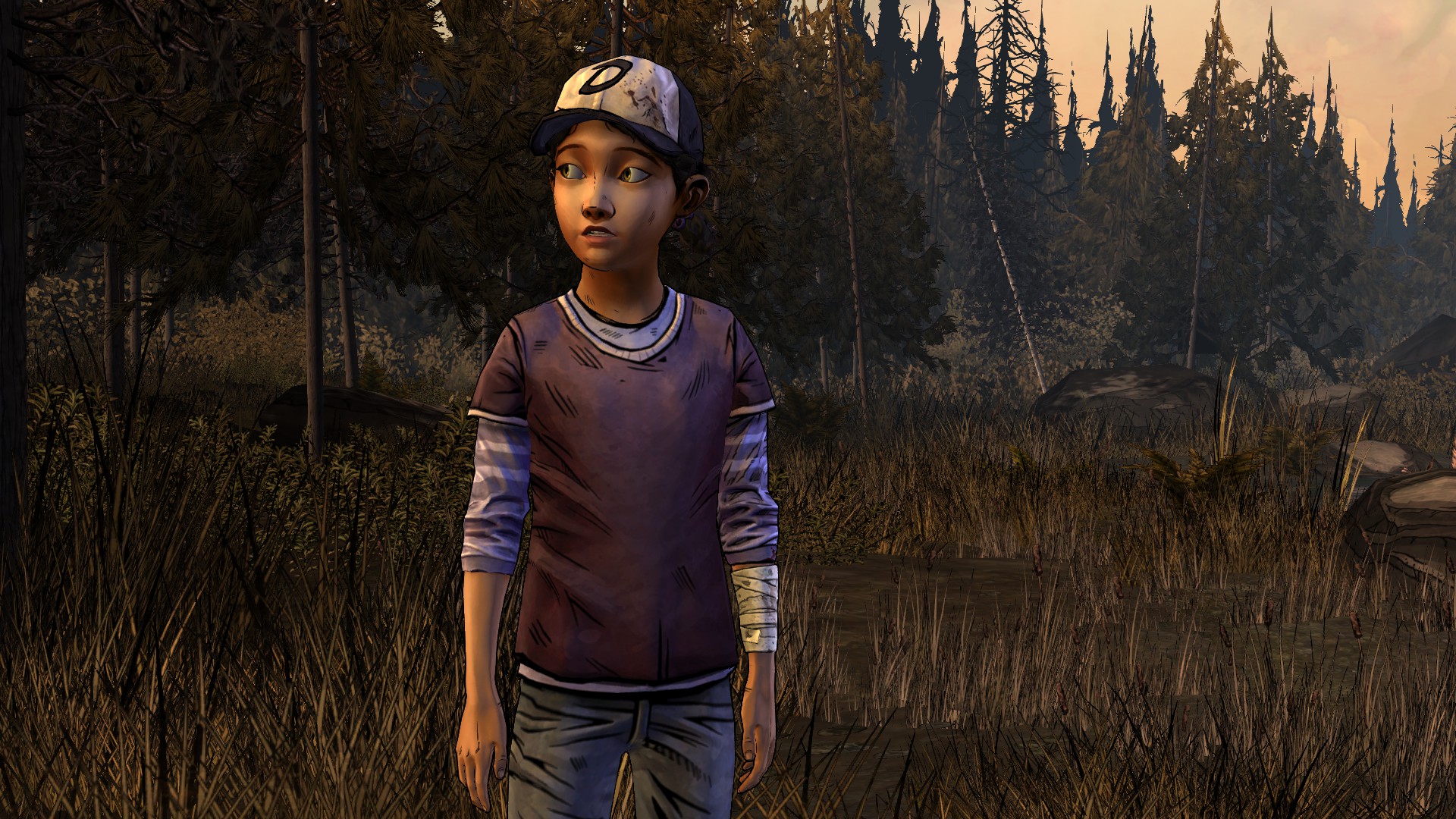 That weakness aside, Season One's greatest strength was how it made you care for Clementine and what she thought of Lee. Clementine is also Season Two's greatest strength, but in a different way: you're playing as Clem, and you get to see how far she's come and how remarkably capable and tough she is for a little girl. Telltale made the right choice in not repeating the caretaker role and instead shifting to show Clem taking care of herself and others. The initial meeting with the new group is a great way to establish Clementine's strength, especially that horrible scene with the stitching that made me grimace and grit my teeth.